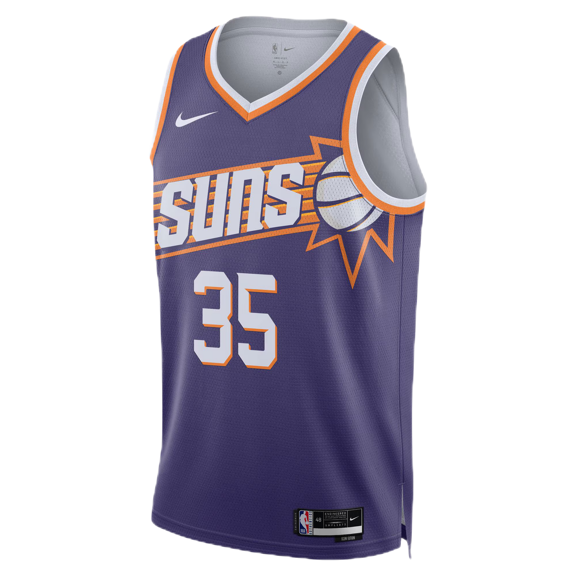 More than just a jersey, it is a wearable memento of a unique period in the franchise’s history. With his iconic #35 prominently displayed, this jersey is a tribute to the offensive brilliance and unstoppable talent that Kevin Durant brought to the Valley.
