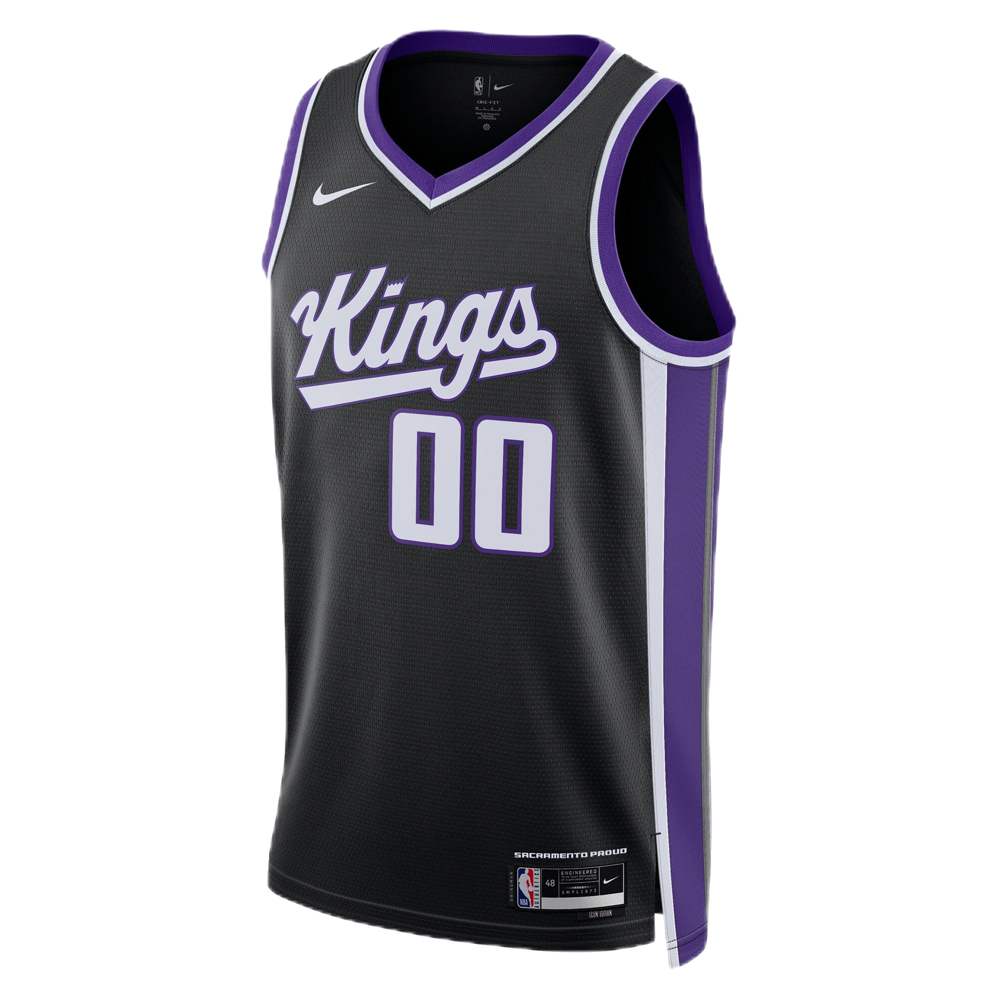 Wear your loyalty. Create your legacy. This Personalized Sacramento Kings Black Icon Jersey is your ultimate statement piece for "Sactown" pride. Featuring the iconic black base with vibrant purple and crisp white accents, this jersey embodies the Kings' bold and regal identity, as seen in the provided images.